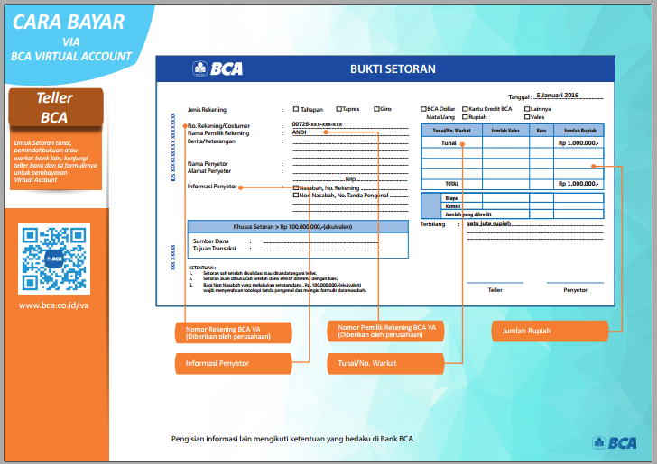 - Isi Slip Bukti Setoran di Teller dengan panduan sebagai berikut: